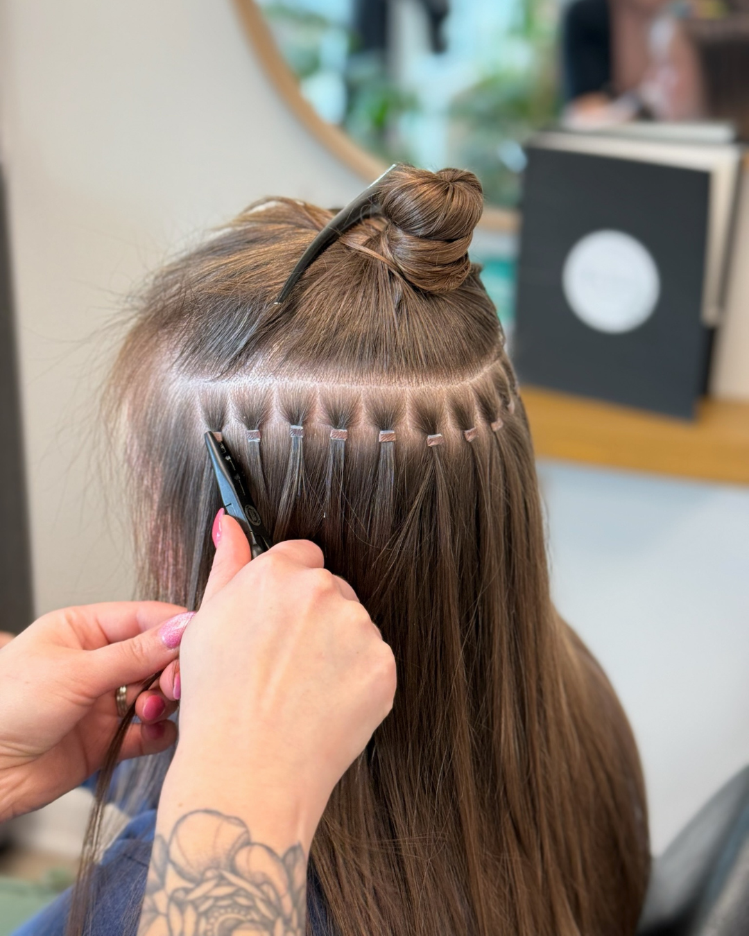 Keratin bonds (also called K-tips) are individual extensions that are fused to your natural hair using a keratin protein bond.